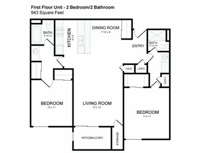 Our 2 bed/2 bath apartments are the perfect layout for roommates and small families. This unit features a spacious common living room area and 2 bedrooms located on either side of the apartment for maximum privacy, both with its own bathroom. The kitchen appliances include dishwasher, stainless steel refrigerator, oven/stove, and microwave, as well as plenty of cabinet space. This floor plan also includes walk-in bedroom closets, a linen closet, and bedroom closets .
